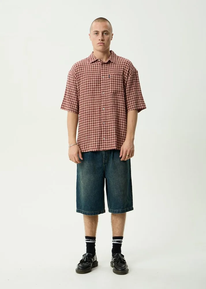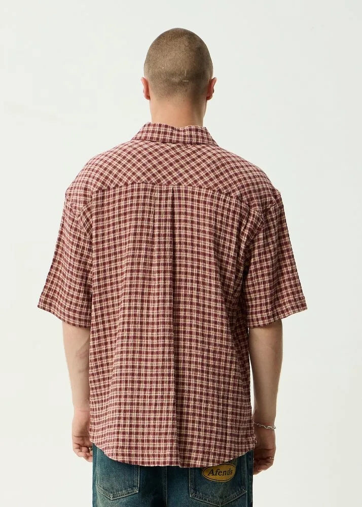 The Capricorn collection is crafted in our in-house designed yarn-dyed woven check, made from lightweight Hemp and Tencel seersucker fabric. Burgundy adds depth while beige keeps it grounded, with a subtle nod to vintage tailoring.