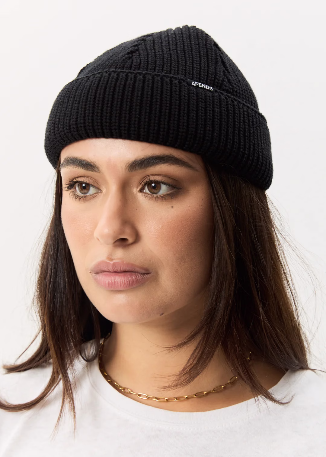 The Afends THC Wharfie Beanie is a streetwear essential with a low-profile fit. Made from a soft, breathable blend of hemp and organic cotton, this short fisherman-style beanie features a wide rib knit and folded cuff for easy styling. Finished with the Afends THC label, it delivers warmth and effortless edge for cooler days or everyday layering.
