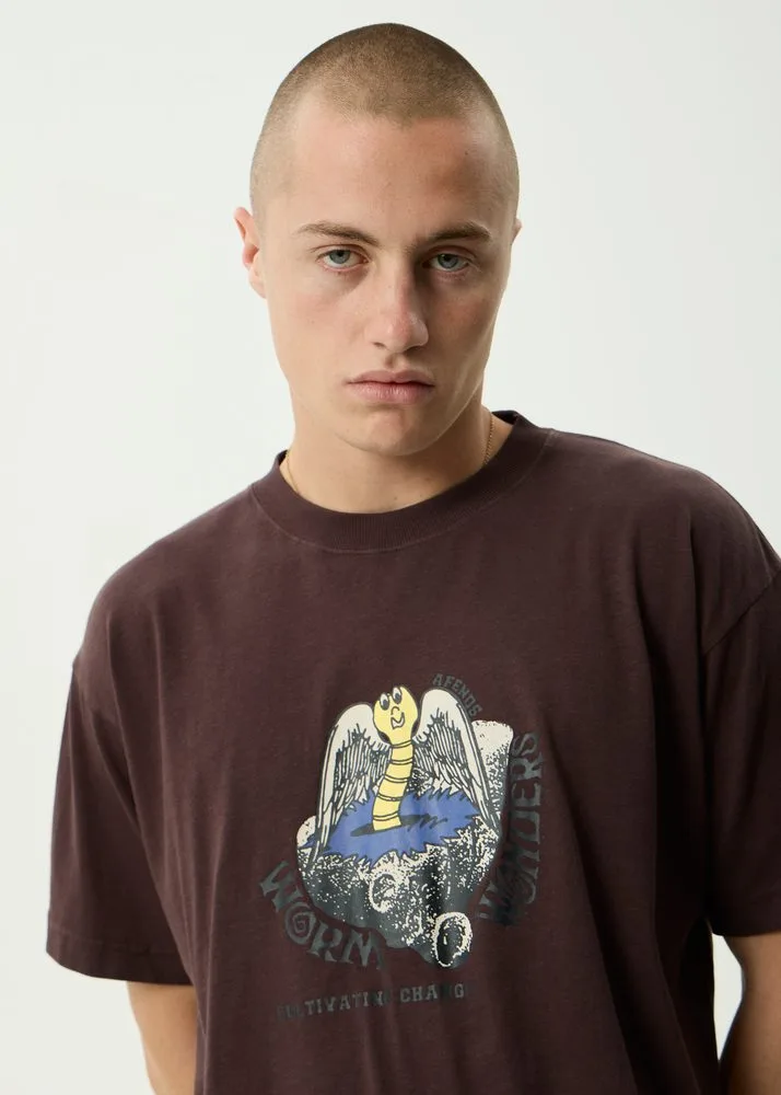 Crafted from a breathable Cotton and Hemp jersey blend, it offers lightweight comfort with a soft hand feel. The printed graphic adds character, while the pigment-dyed finish allows the colour to naturally fade over time, creating a lived-in look unique to each piece.