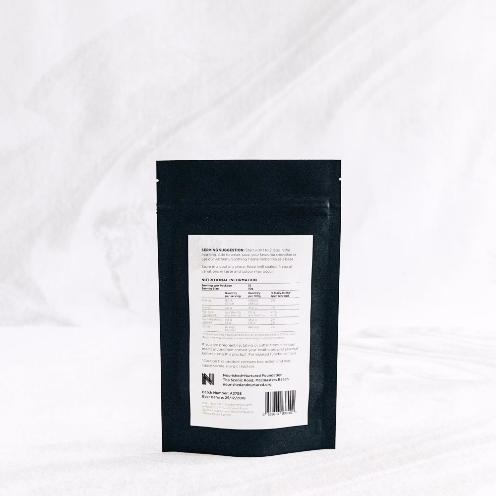 Crafted with care and guided by nutritional wisdom. Uses pure ingredients, including West Australian Bee Pollen. Please note this blend cannot be shipped to Western Australia due to quarantine laws.