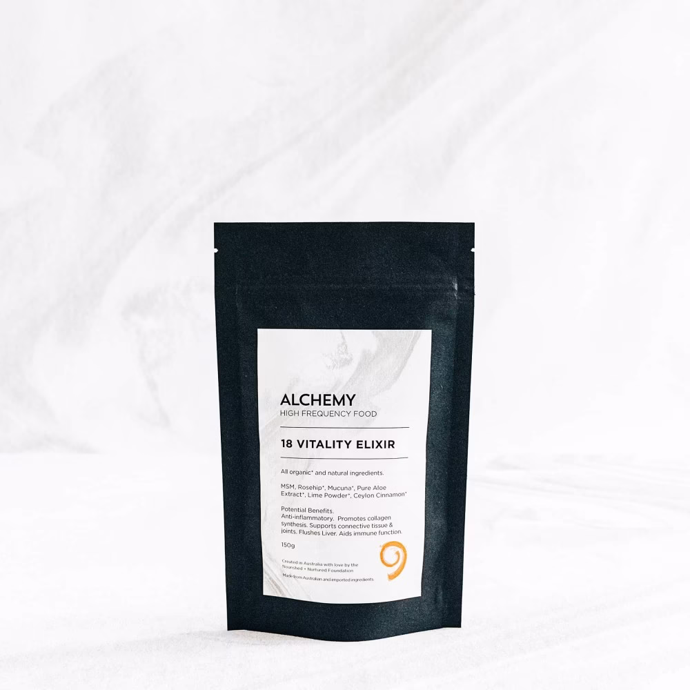 Alchemy Vitality Elixir 150g contains MSM, Rosehip, Mucuna, Pure Aloe, Lime and Ceylon Cinnamon. These ingredients work together to promote flexibility, collagen synthesis, mood balance and liver support. The formula remains gluten free, dairy free, sugar free and free from additives.