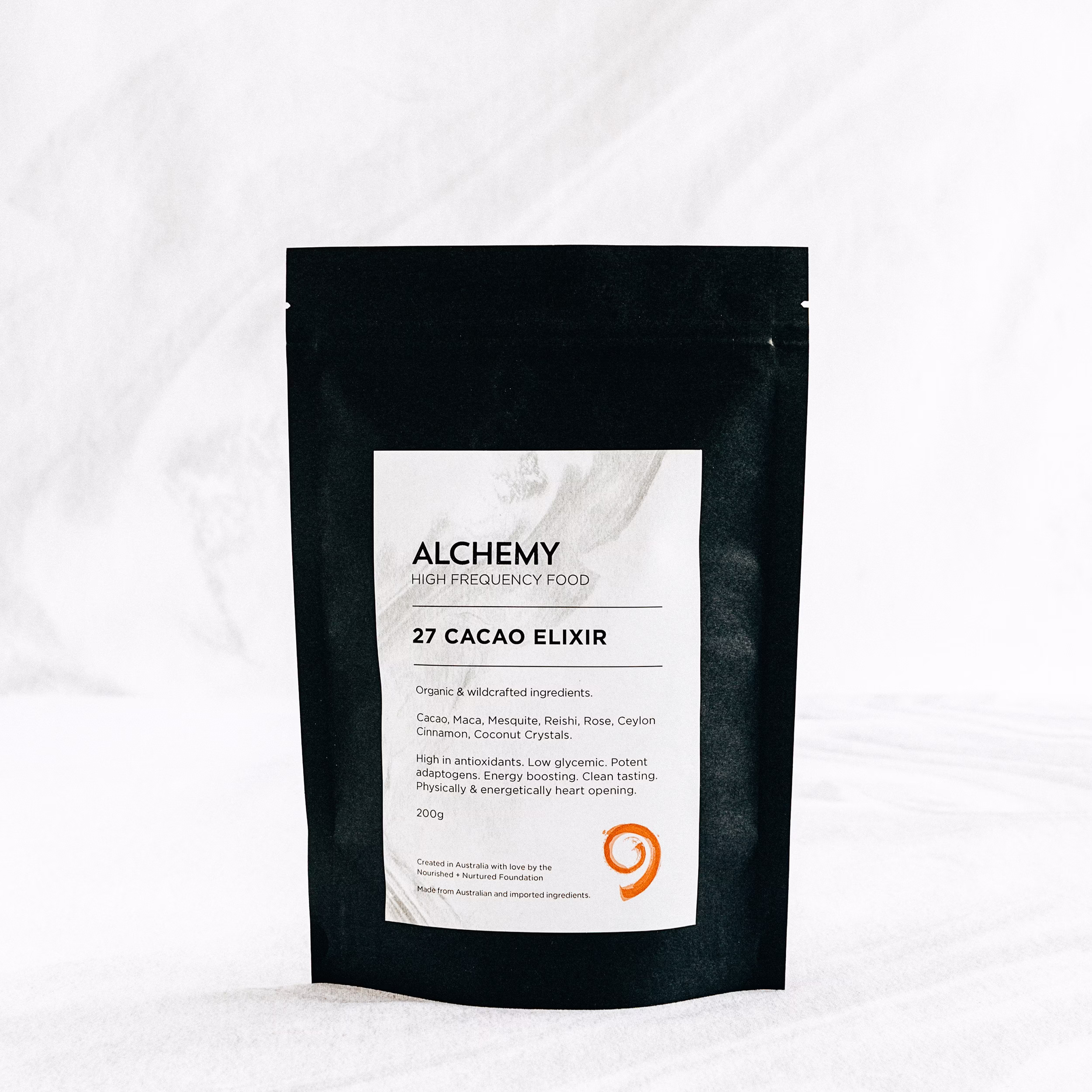 Alchemy Cacao Elixir 200g uses traditional herbs and ancient cacao wisdom. Reishi offers tonifying support, while cacao acts as a natural potentiator to help the adaptogens work effectively. The blend tastes rich and earthy with natural sweetness from Mesquite and Coconut Nectar Crystals. Rose adds a gentle floral note to support digestion and emotional balance.