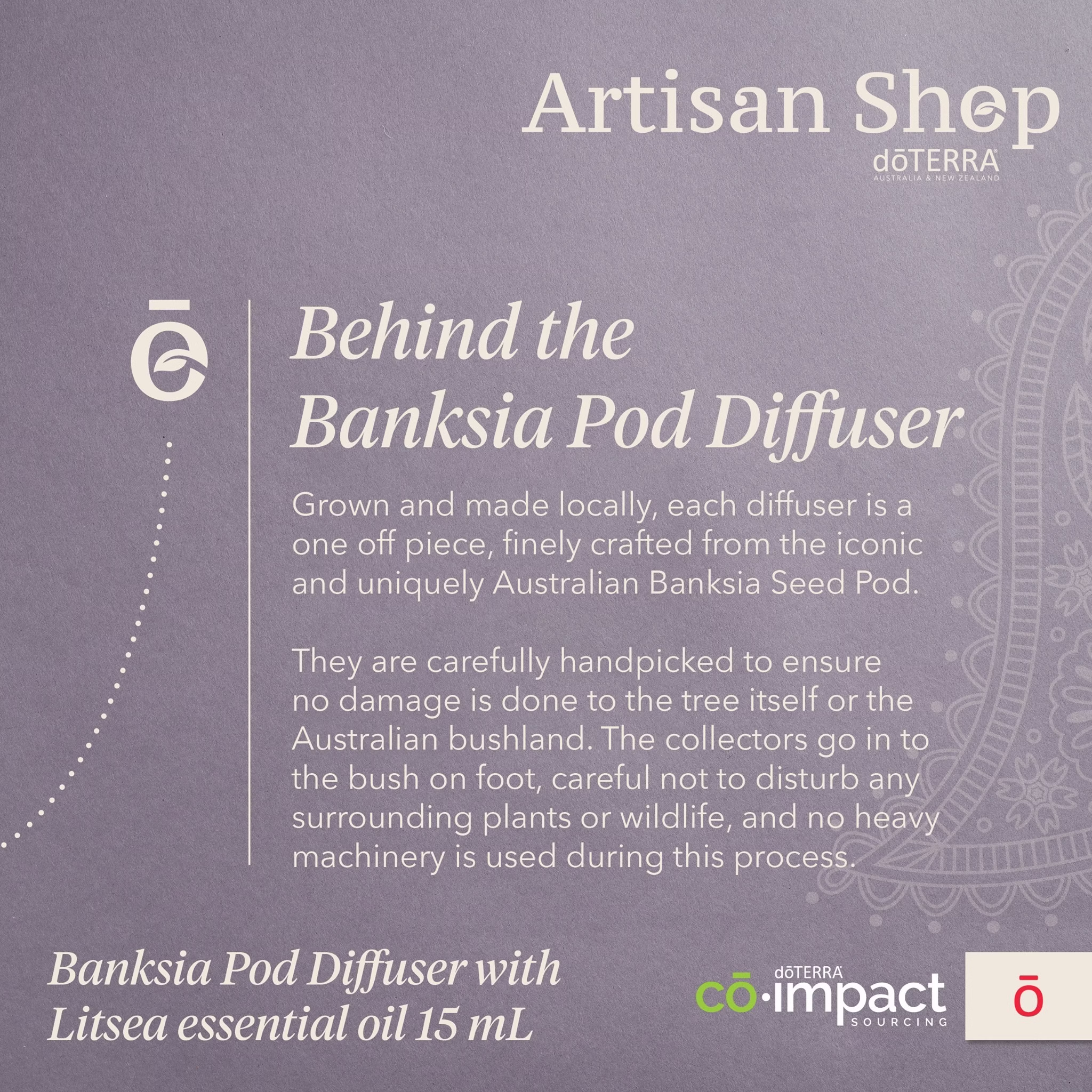 doTERRA Banksia Diffuser uses gentle ultrasonic diffusion to create a relaxing aromatic atmosphere at home, work, or on the go.