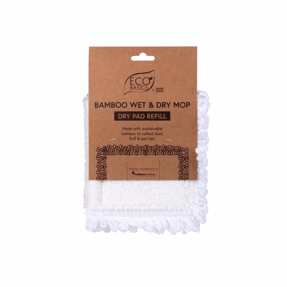 The Eco Basics Bamboo Wet And Dry Mop Refill offers an efficient and sustainable way to keep floors clean. Made with bamboo fibre, this refill attracts dust, fluff, and pet hair with ease.
