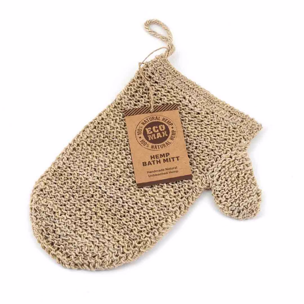 The ECOMAX Hemp Bath Mitt is a natural, eco-friendly bath accessory designed to exfoliate and cleanse your skin gently.