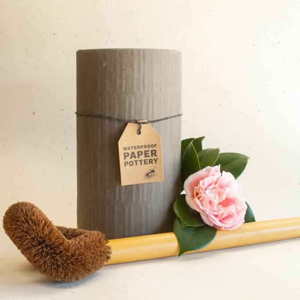 The Concrete Toilet Brush Holder is ethically handmade in Sri Lanka and serves as a plastic-free alternative to pair with the EcoMax Toilet Brush. This innovative design features paper lined with natural rubber, making it completely waterproof on the inside and water-repellent on the outside. With a weighted base for stability, the Paper Pottery Toilet Brush Holder is unbreakable and adds a unique, eco-friendly touch to your bathroom décor.