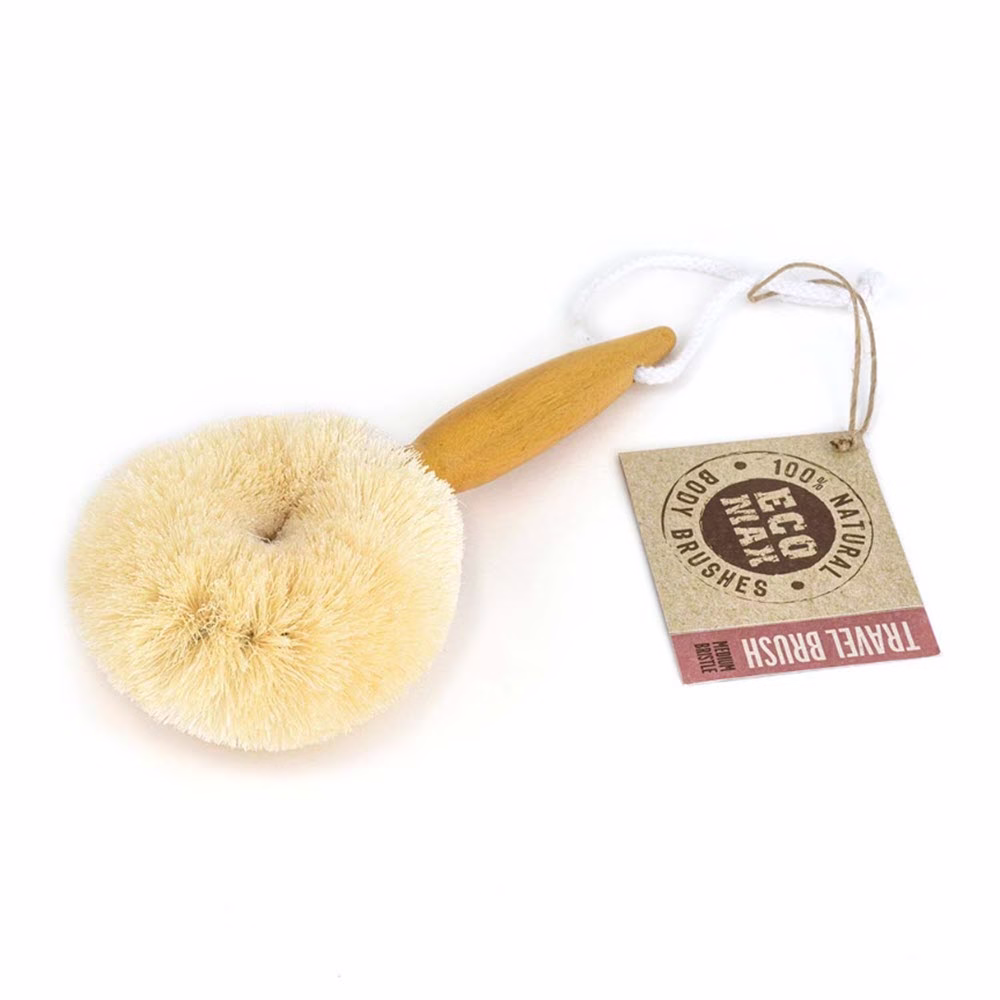 The ECOMAX Travel Body Brush is a compact, eco-friendly skincare essential designed for exfoliation on the go.