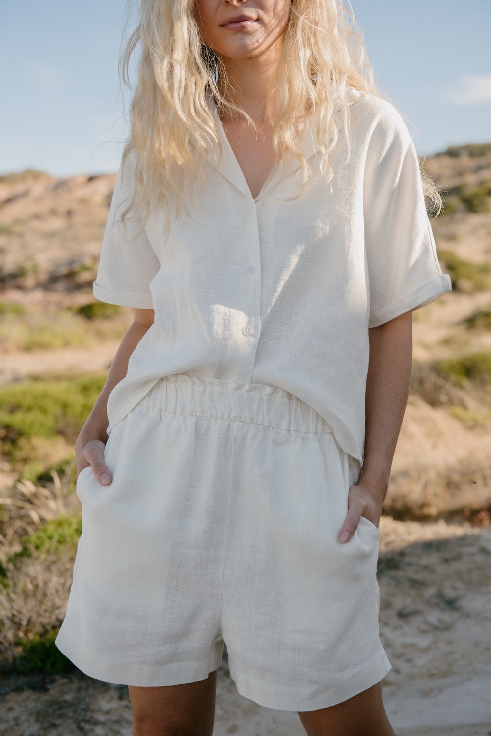 Whether worn buttoned up or open over a tee, it’s the perfect shirt for beach days, weekends, or casual evenings.