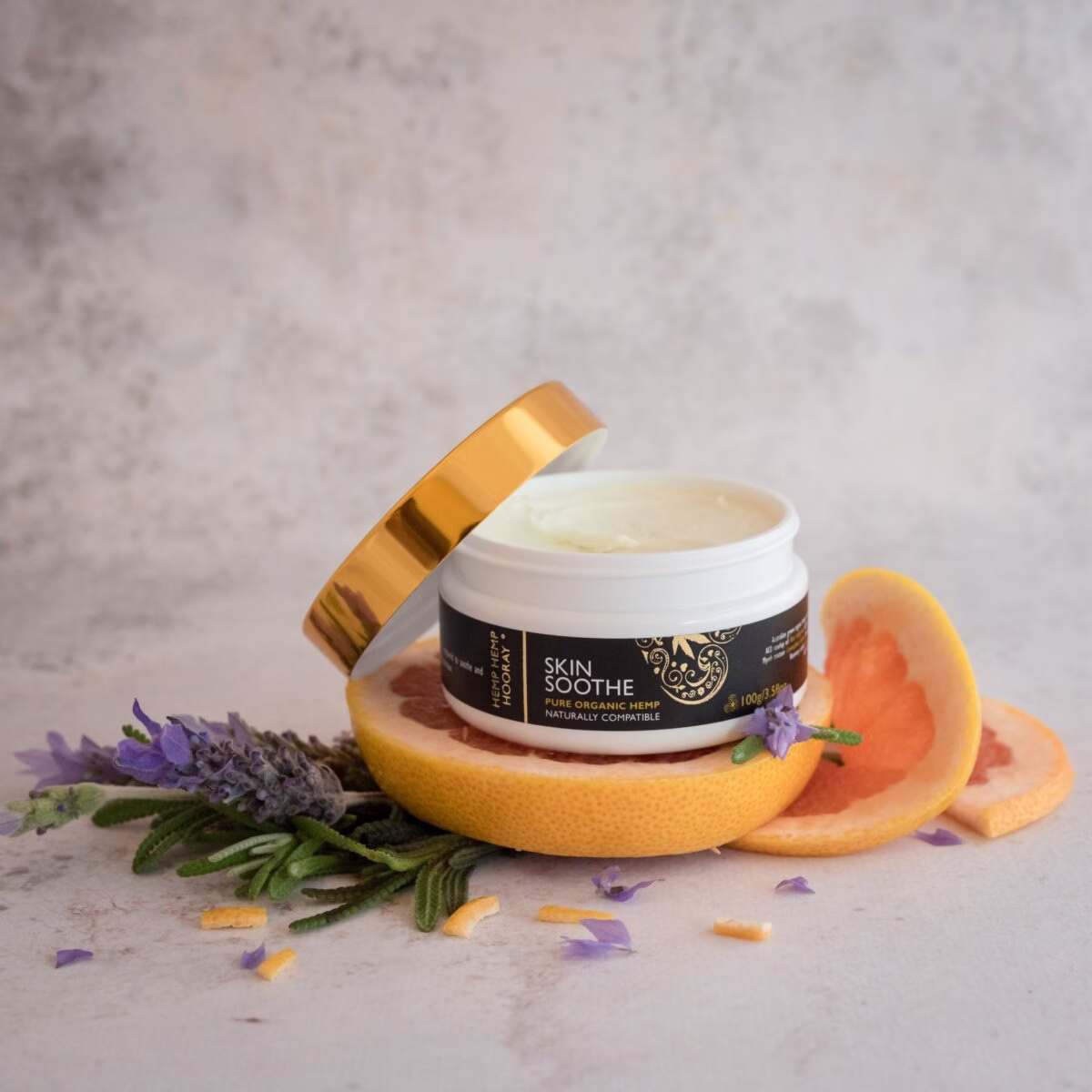 INGREDIENTS: Purified water, Australian grown organic hemp seed oil, vegetable emulsifying wax, certified organic Jojoba oil, certified organic shea butter, certified organic cocoa butter, certified organic glycerine (vegetable derived), natural vitamin E, grapefruit seed extract, benzoin tincture, rosemary extract, and certified organic essential oils of lemongrass, tea tree and lavender.