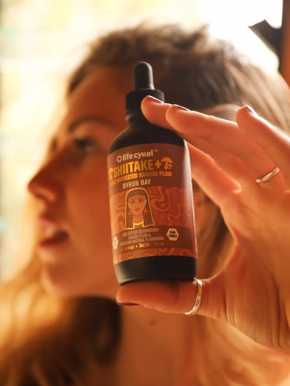 Life Cykel Double Liquid Extract Flavourings are engineered in Australia and USA using a unique double extraction process. Additionally, they’re full spectrum which means both the mushroom fruiting bodies and the mycelium are used in the extraction process. This creates a well-rounded, high quality product. All Life Cykel Double Liquid Extract Flavourings are infused with Australian native Kakadu Plum.