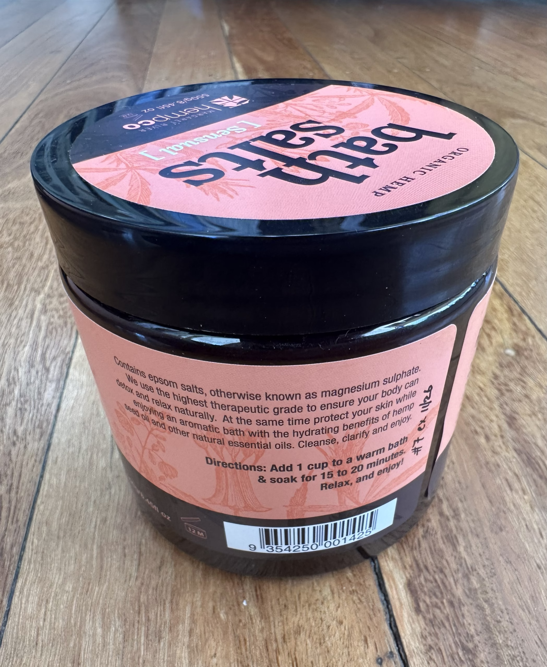 Organic hemp bath salts ease tired muscles and soothe your skin with a calming blend of salts, botanicals, and nourishing hemp seed oil. Enjoy a gentle, relaxing soak.