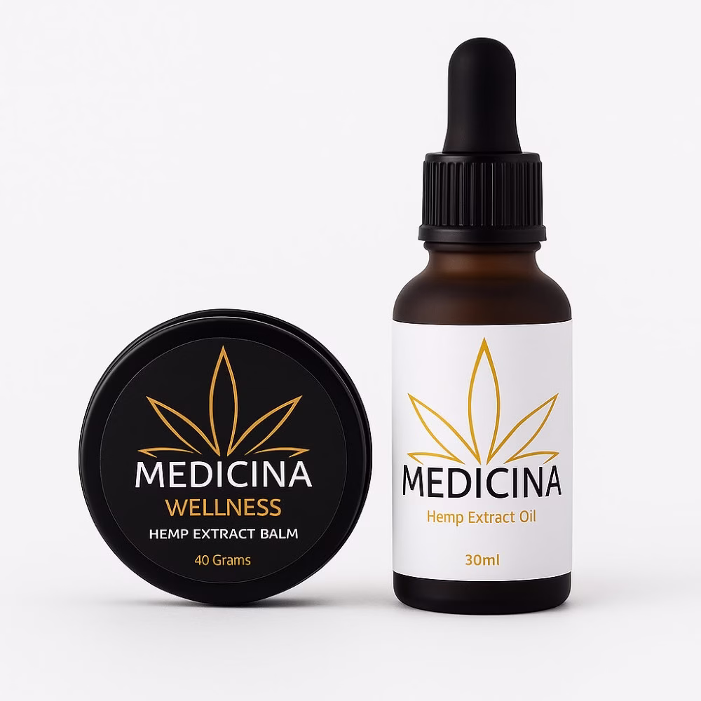 Medicina – Hemp Extract Wellness Bundle Strong is a concentrated pairing designed for those who need extra potency in their everyday care routine. This bundle includes the 30ml Hemp Extract Oil Strong (1000) and the nourishing Hemp Extract Balm, offering a powerful and versatile combination for targeted topical support.