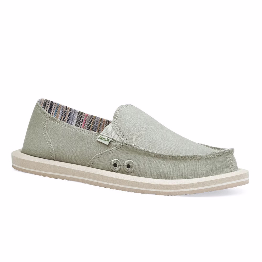 The Sanuk W Donna Hemp brings casual comfort with a touch of eco-friendly style. Made from a hemp-cotton blend, the upper features a traditional raised toe seam and elastic gore panels for a snug yet flexible fit. The cotton lining keeps your feet cool, while the contoured EVA footbed provides supportive cushioning.