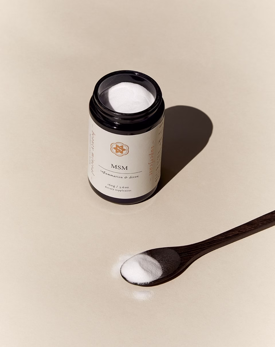 Target inflammation with Superfeast MSM. This powerful mineral is well known for supporting joint health and reducing information, among many benefits to the skin, hair, nails, joints and muscle tissue.