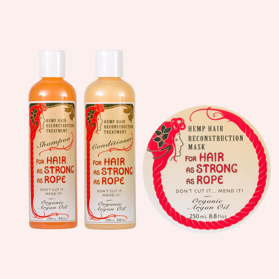 The Good Oil – Strong as Rope Mask Bundle includes the Argan Hair as Strong as Rope Shampoo (250ml), Conditioner (250ml), and Mask. This complete three-step system repairs damage, restores hydration, and strengthens hair from root to tip. With organic argan oil, hemp seed oil, and nourishing botanicals, it smooths, adds shine, and delivers long-lasting volume. Fruity, sweet tones make every wash a fresh and uplifting experience.