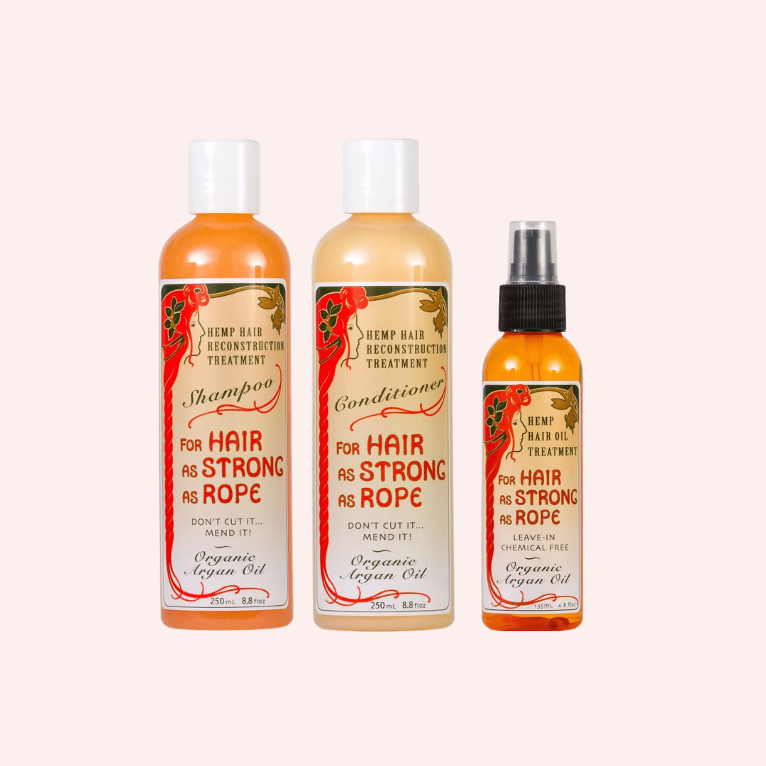 The Good Oil – Strong as Rope Treatment Bundle includes the Argan Hair as Strong as Rope Shampoo (250ml), Conditioner (250ml), and Treatment Oil. Together, they form a complete haircare routine that cleanses, nourishes, and protects every strand. With organic argan oil, hemp seed oil, and a rich blend of botanical extracts, this bundle strengthens hair, restores shine, and locks in long-lasting hydration. Fruity, sweet tones add a refreshing finish, making your daily routine feel indulgent.