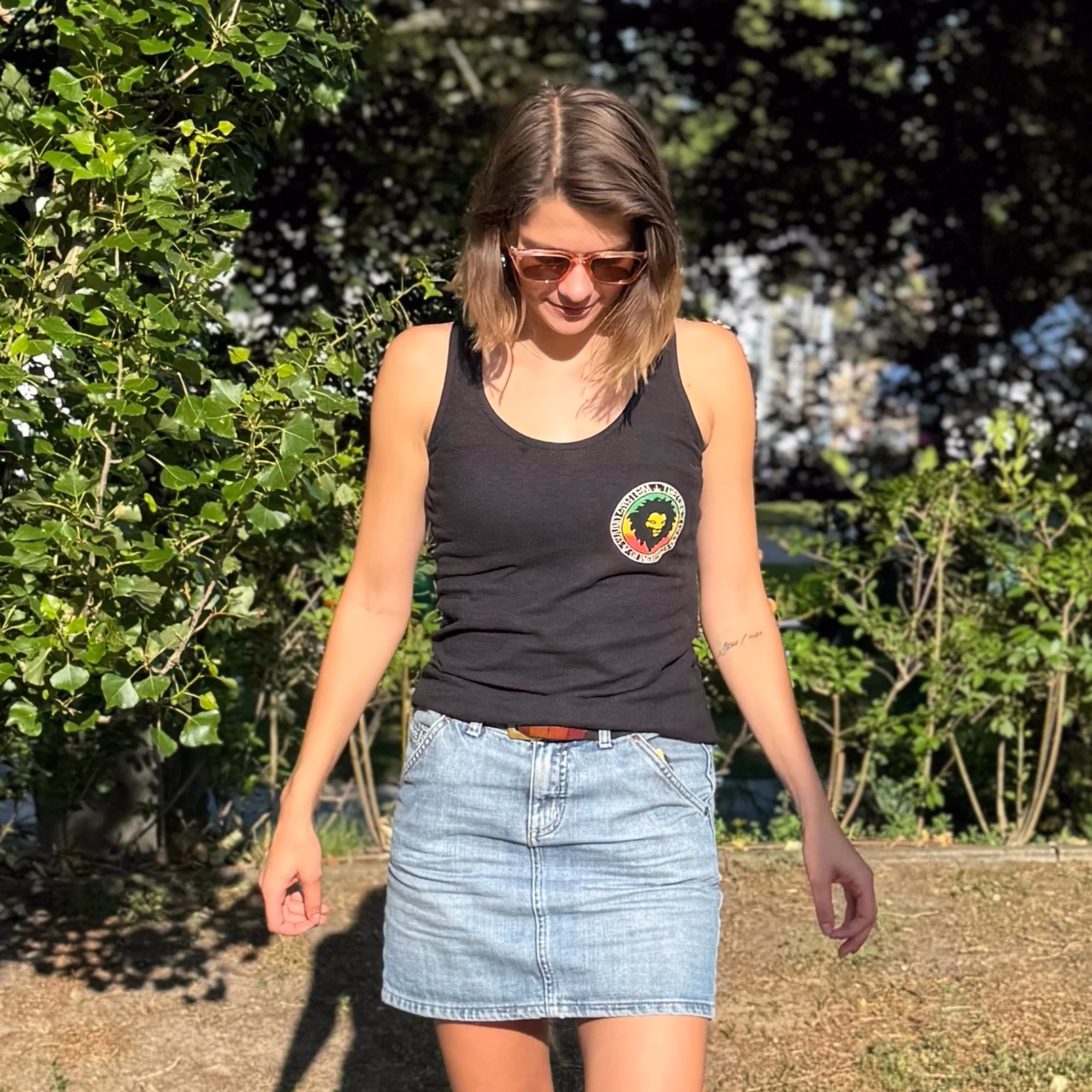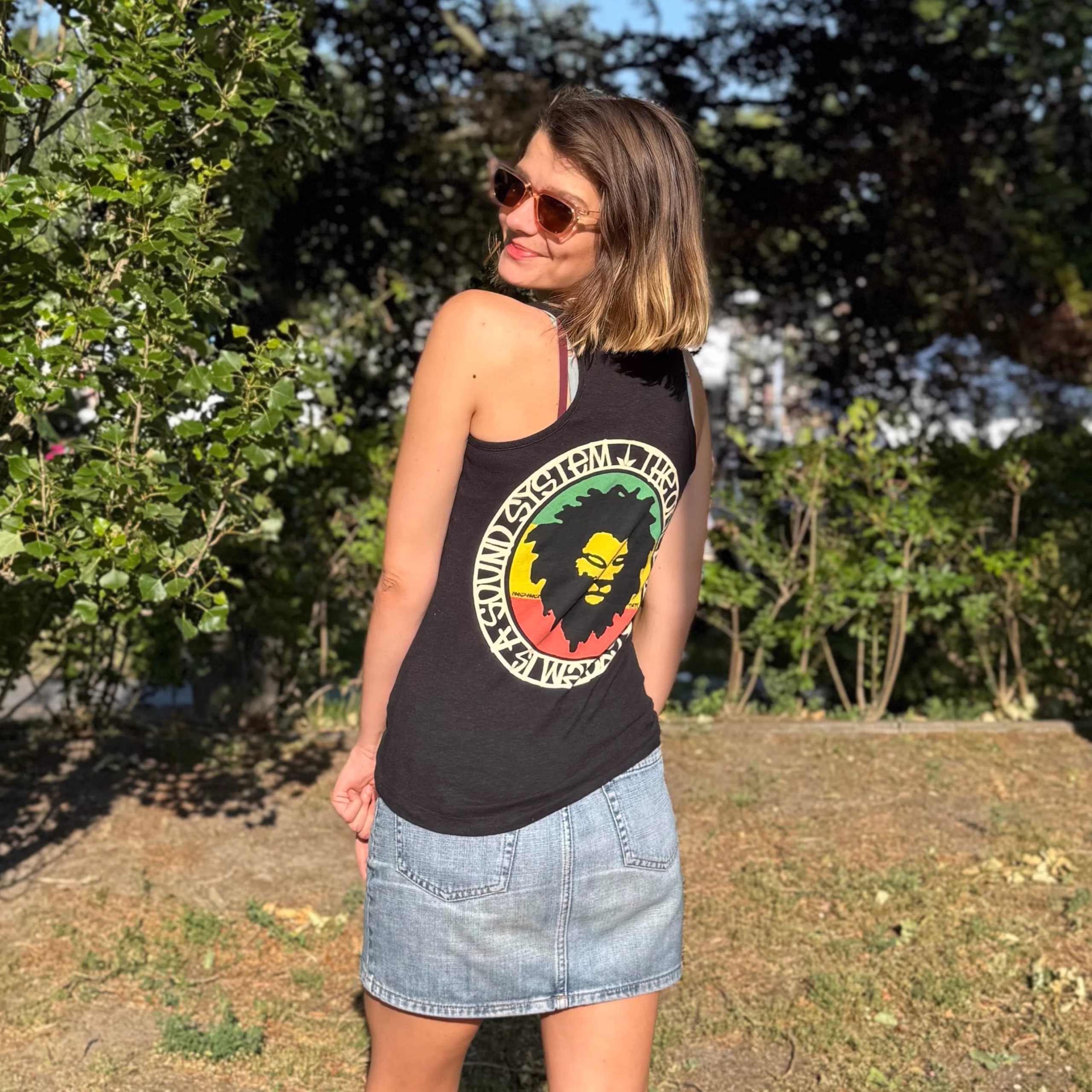 The THTC System of a Mau Women’s Hemp Tank Top continues Mau Mau’s legacy of reggae-inspired art in a sustainable sleeveless design.